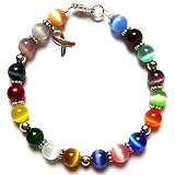 Product DescriptionOur Bracelets are Handmade in the USA. Made with 8mm cats eye beads (the red bead here is a glass pearl, not a cat's eye bead), silver plated 5mm round beads,silver plated Bali Daisy Spacer beads and a cancer awareness ribbon. Finished with a strong lobster clasp with strong professional wire. These bracelets are 7 3/4 inches long, this will fit most adults and is a good universal size. They also come with two extension rings per bracelet just in case. The bracelets come mounted on a card, prepackaged with the meaning of all the cancer colors printed on the back of the card. A great way to get bracelets for any cancer awareness event, to resell for a good cause or just to wear your self to show support for cancer awareness. Colors used in this bracelet and their meanings: You will receive the following colors: Forest Green (Renal/Kidney), Dark Brown (Colo-rectal & Anti-Tobacco), Purple (Pancreatic), Orange (Leukemia), Powder Blue (Thyroid & Prostate), Royal Blue (Prostate), Mint (Liver, Lymphoma & transplant), Lavender (All cancer survivors and general cancer awareness), Yellow (Bladder), Black (Melanoma), White (Cervical, Bone & Retinoplastoma), Gray (Brain), Pink (Breast), Teal (Ovarian), Peach(Uterine), Red/Burgundy (Aids/Myeloma), Golden (Childhood Cancer) & Periwinkle (Stomach).